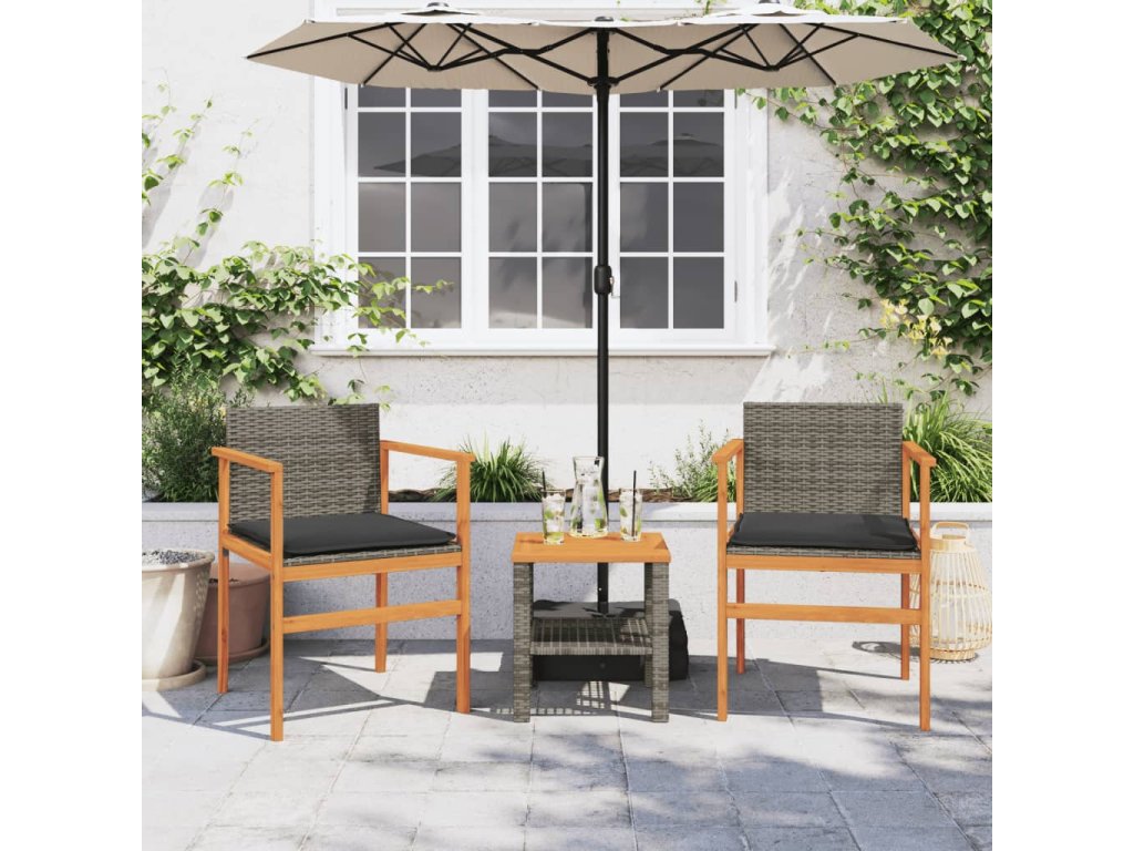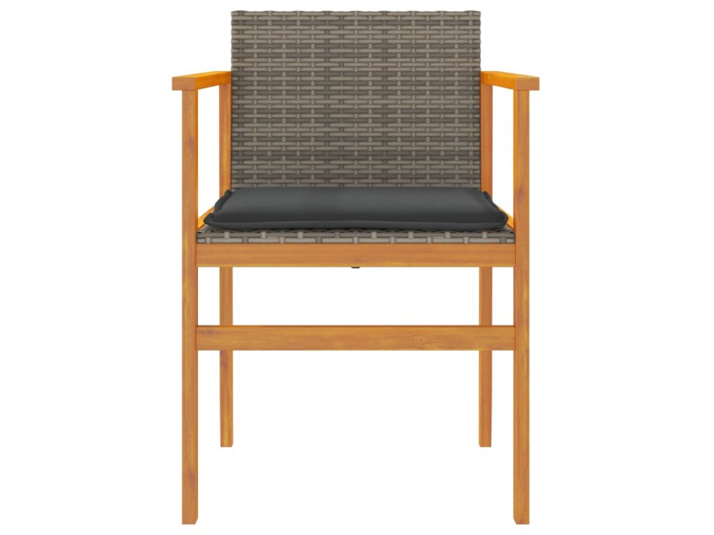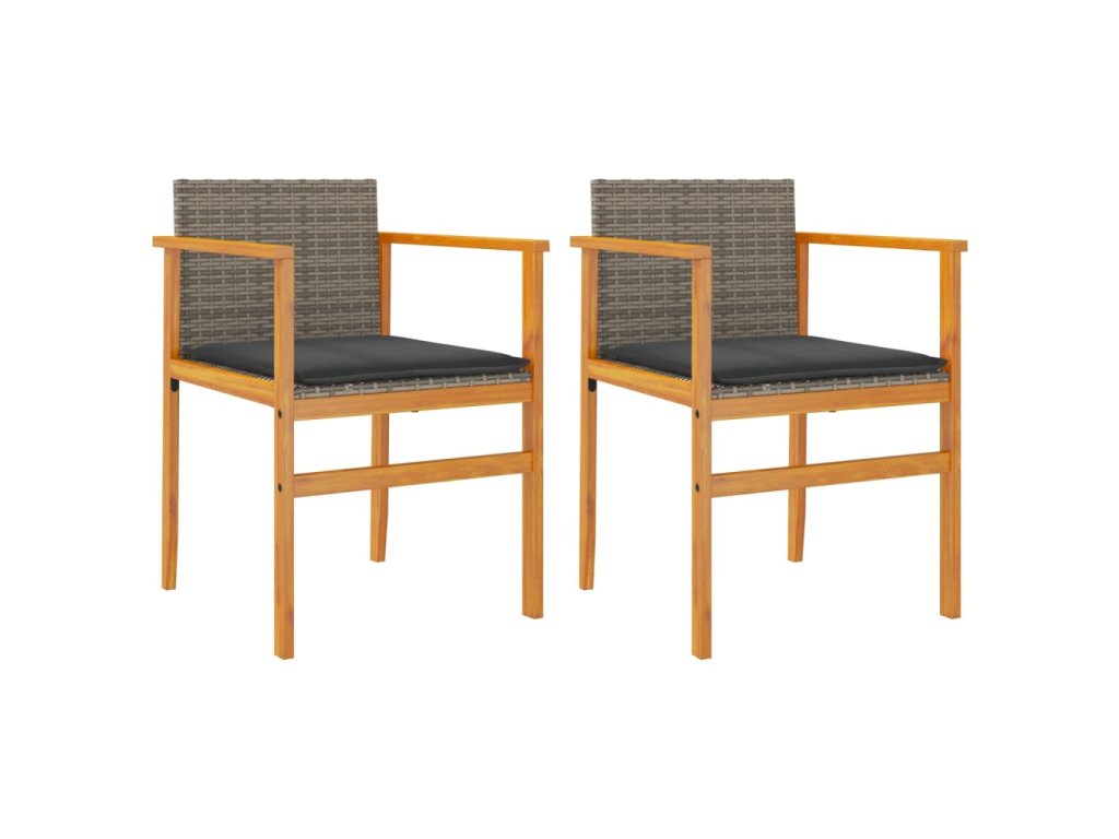Multidom Záhradné stoličky s vankúšmi 2ks sivé polyratan a masívne drevo