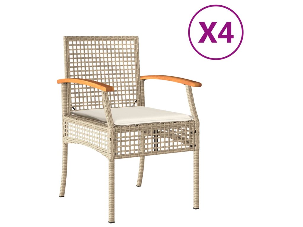 Multidom Záhradné stoličky s vankúšmi 4 ks béžové polyratan akácia
