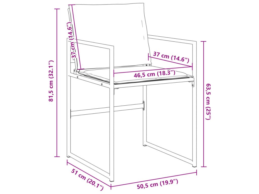 - Rozmery podložky na stoličku: 45,5 x 43,5 x 2,5 cm (Š x H x V)