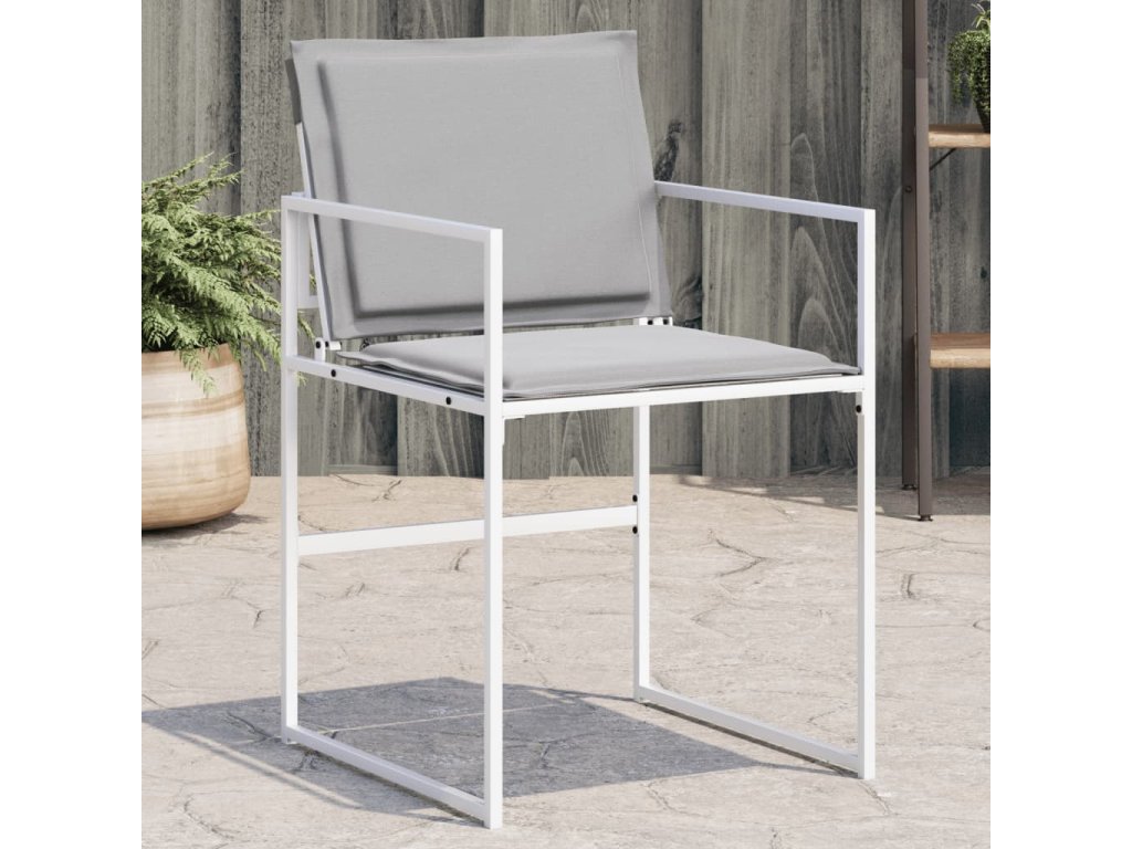 Multidom Záhradné stoličky s vankúšmi 4 ks biele oceľ a textilen