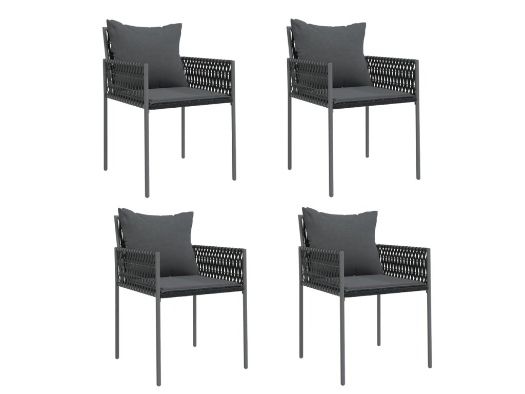 Multidom Záhradné stoličky s vankúšmi 4 ks čierne 54x61x83 cm polyratan