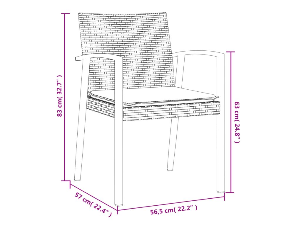 Multidom Záhradné stoličky s vankúšmi 4 ks hnedé 56,5x57x83 cm polyratan