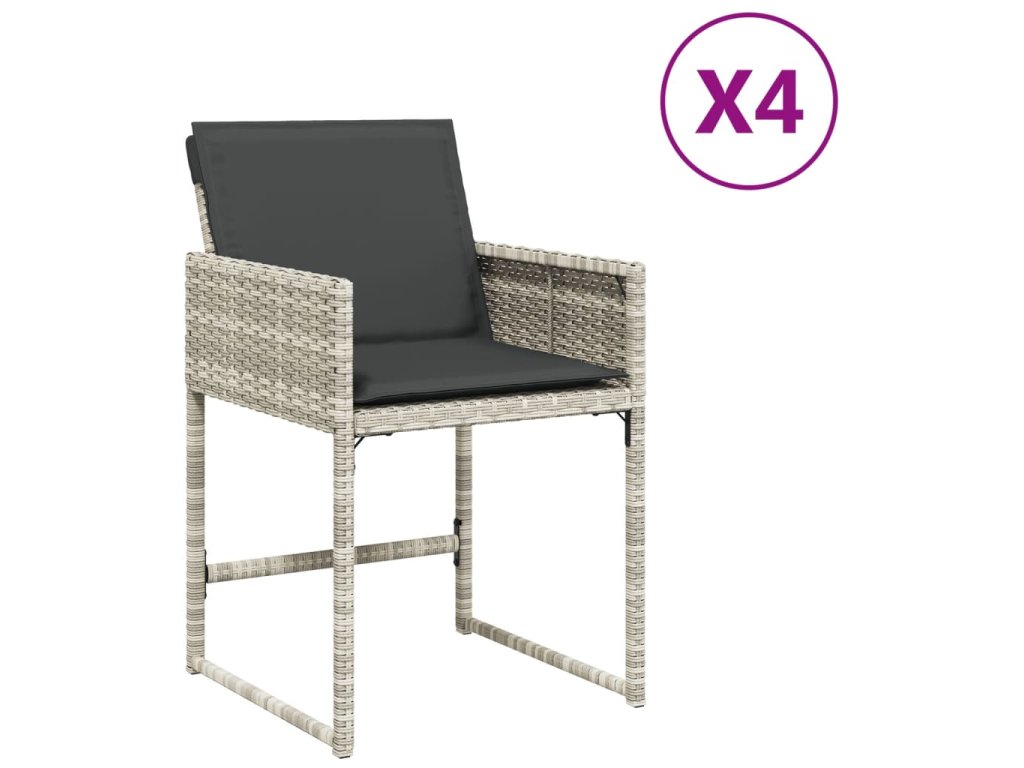 Multidom Záhradné stoličky s vankúšmi 4 ks svetlosivé polyratan