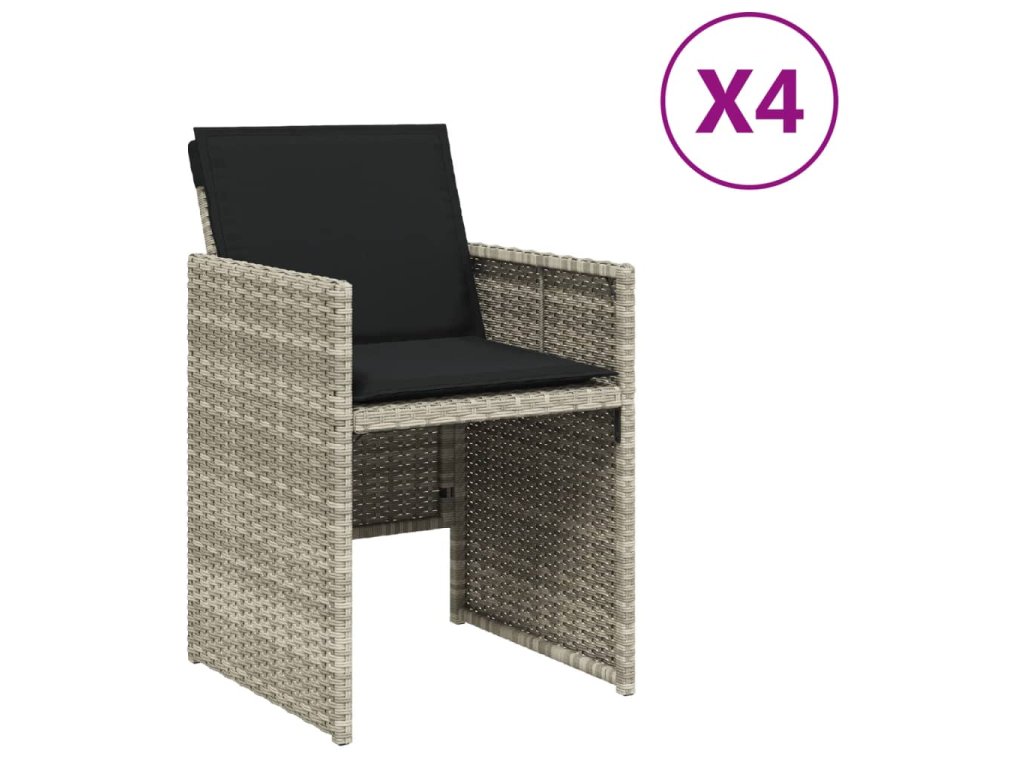 Multidom Záhradné stoličky s vankúšmi 4 ks svetlosivé polyratan