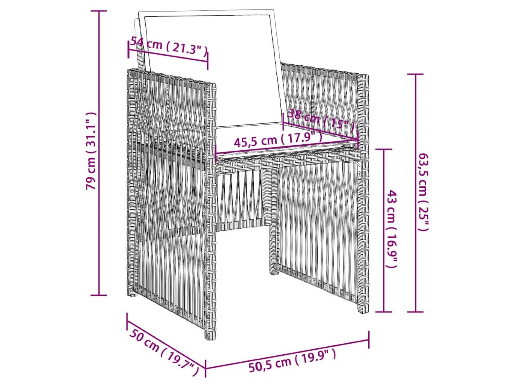 - Robustný a stabilný rám: Oceľový rám s práškovým nástrekom zaisťuje, že záhradný nábytok je pevný a stabilný pre každodenné vonkajšie použitie.
