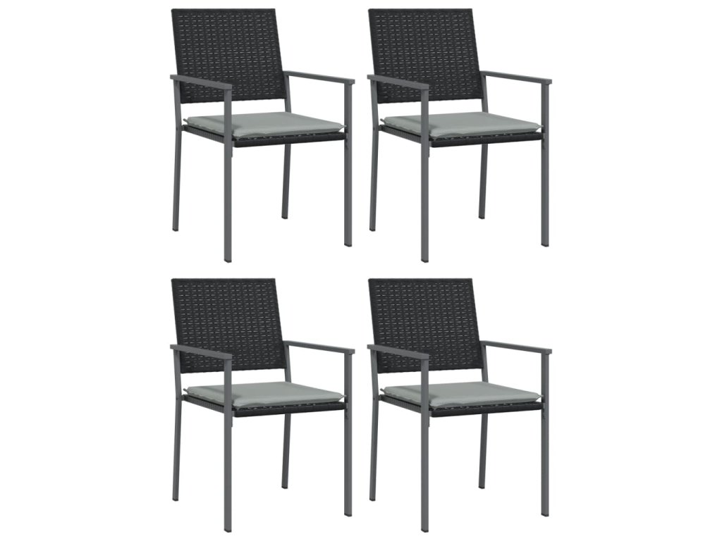 Multidom Záhradné stoličky s vankúšmi 4ks čierne 54x62,5x89 cm polyratan