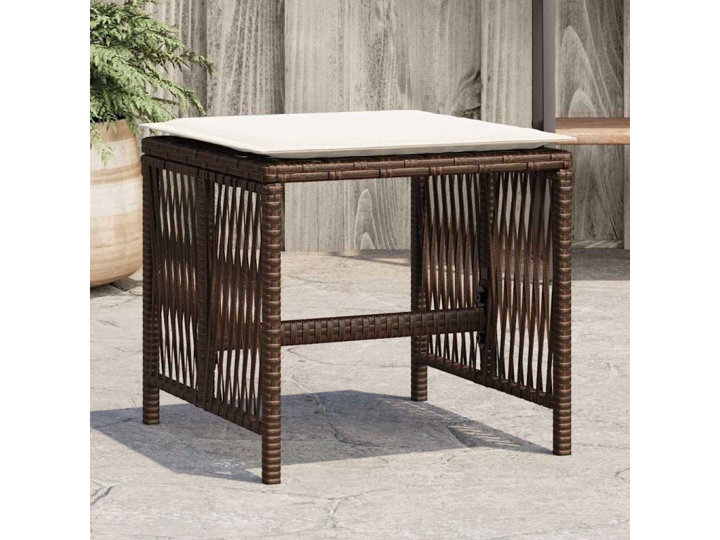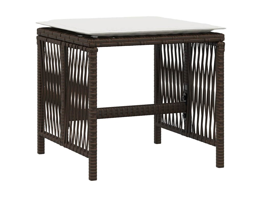 Multidom Záhradné taburetky s vankúšmi 4 ks hnedé 41x41x36 cm polyratan