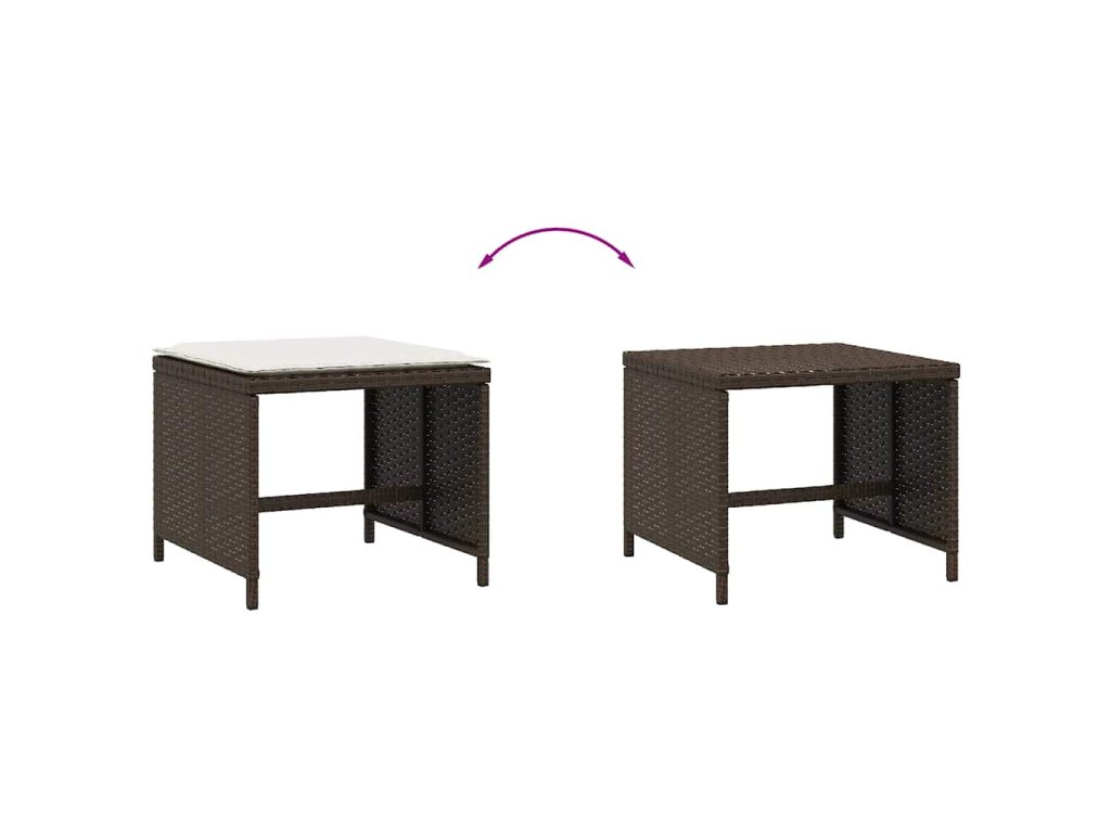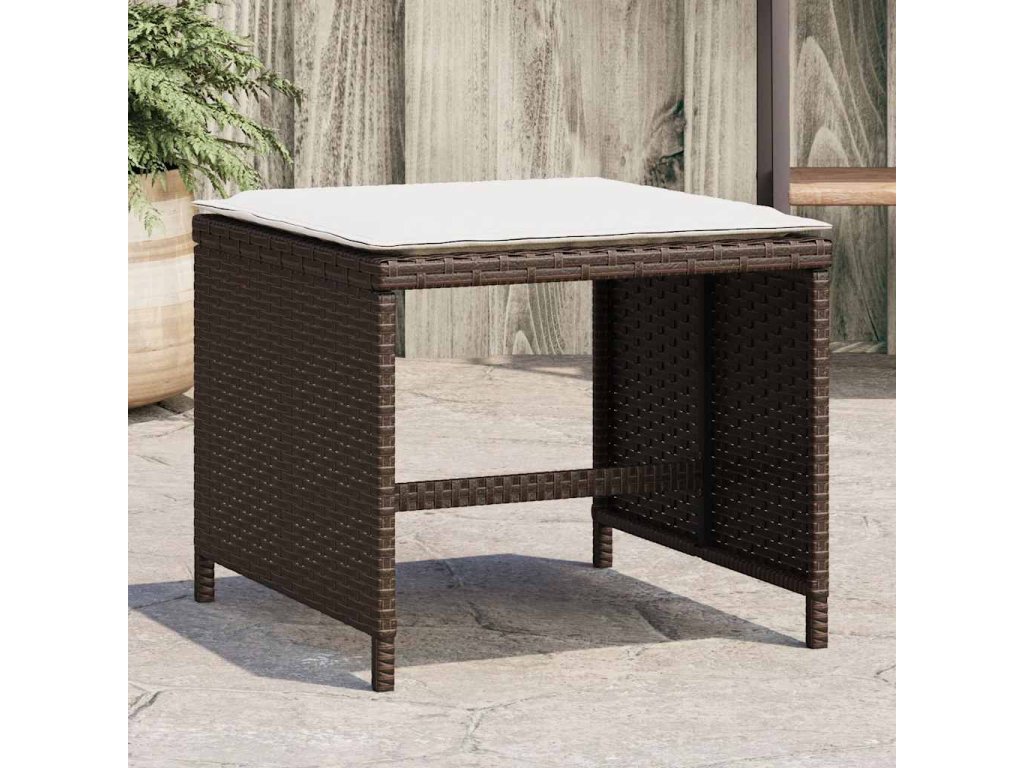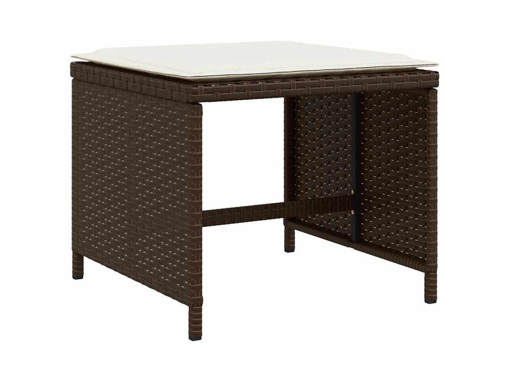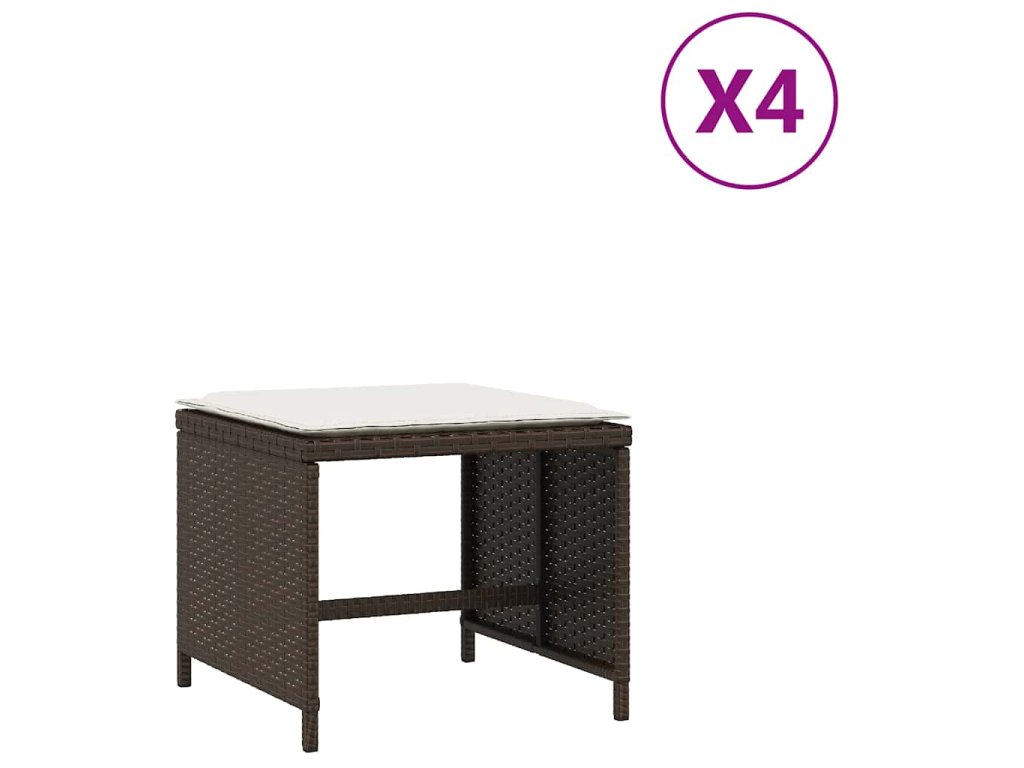 Multidom Záhradné taburetky s vankúšmi 4 ks hnedé 41x41x36 cm polyratan