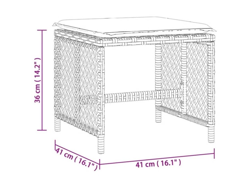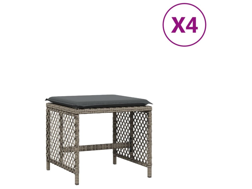 Multidom Záhradné taburetky s vankúšmi 4 ks sivé 41x41x36 cm polyratan