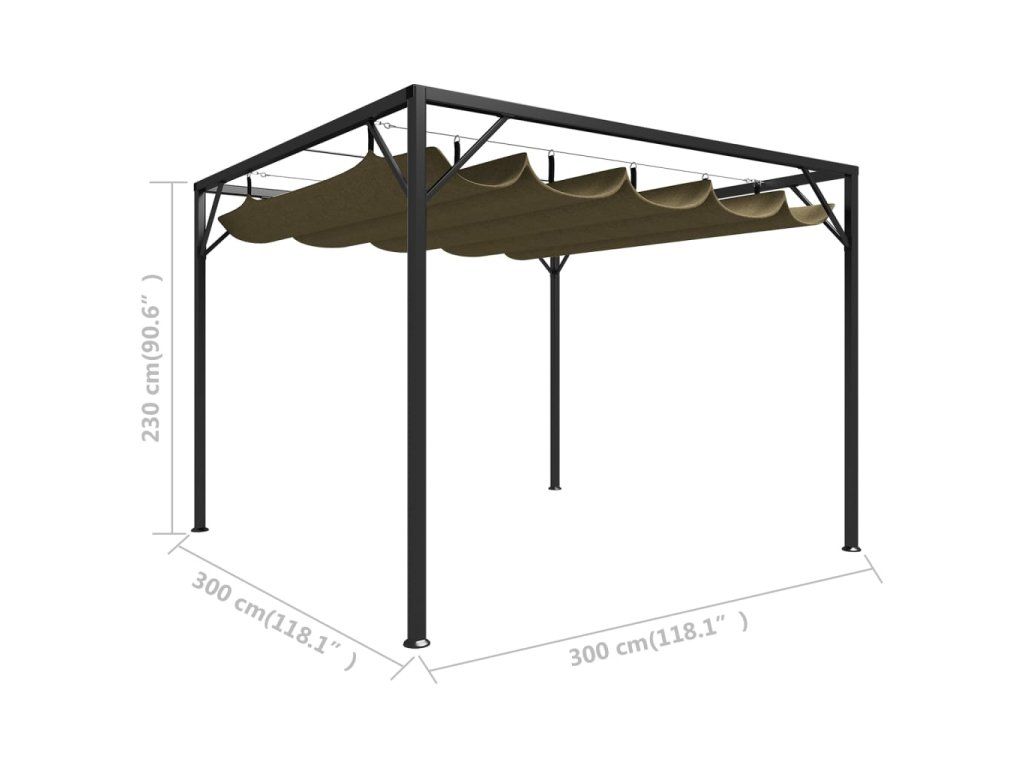 Multidom Záhradný altánok, zaťahovacia strecha 3x3 m, sivohnedý 180 g/m²