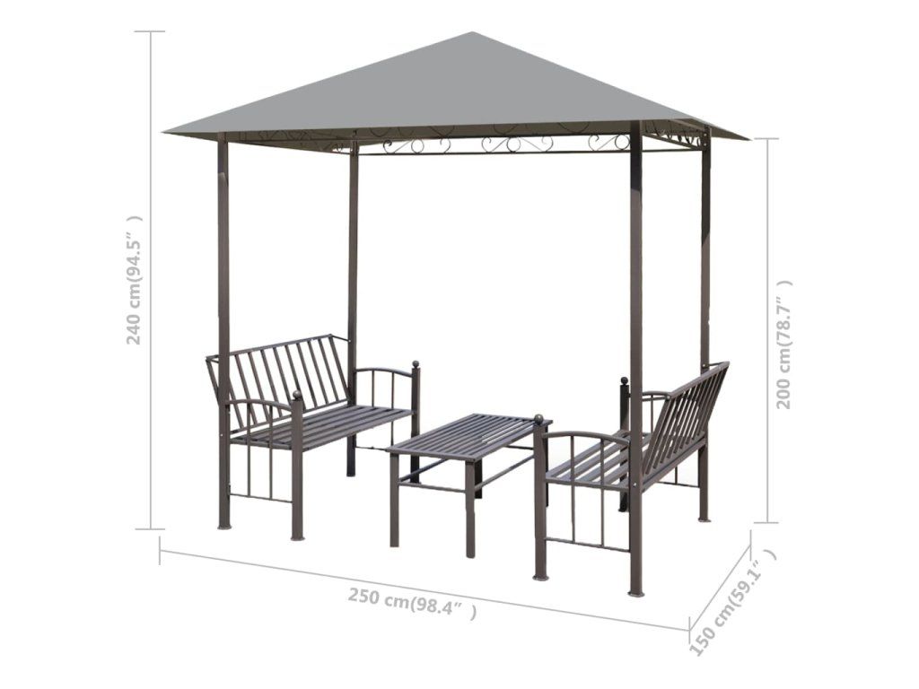 Multidom Záhradný altánok so stolom a lavicami antracitový 2,5x1,5x2,4 m