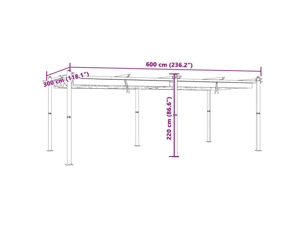 - Robustný a odolný rám: Rám je vyrobený z hliníka, a je vhodný na dlhodobé používanie vonku. Vďaka pevným nosníkom na podopretie strechy a vystuženým stojanom zaručuje stabilitu.