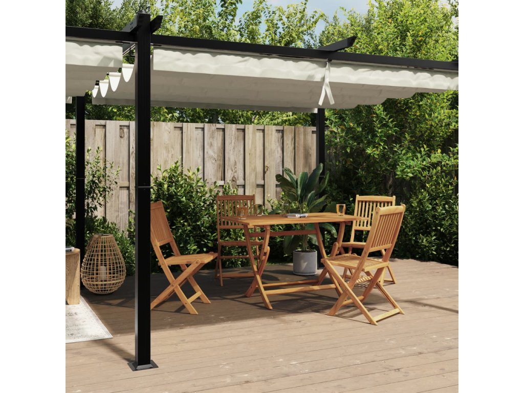 Multidom Záhradný altánok so zaťahovacou strechou krémový 3x6 m hliník