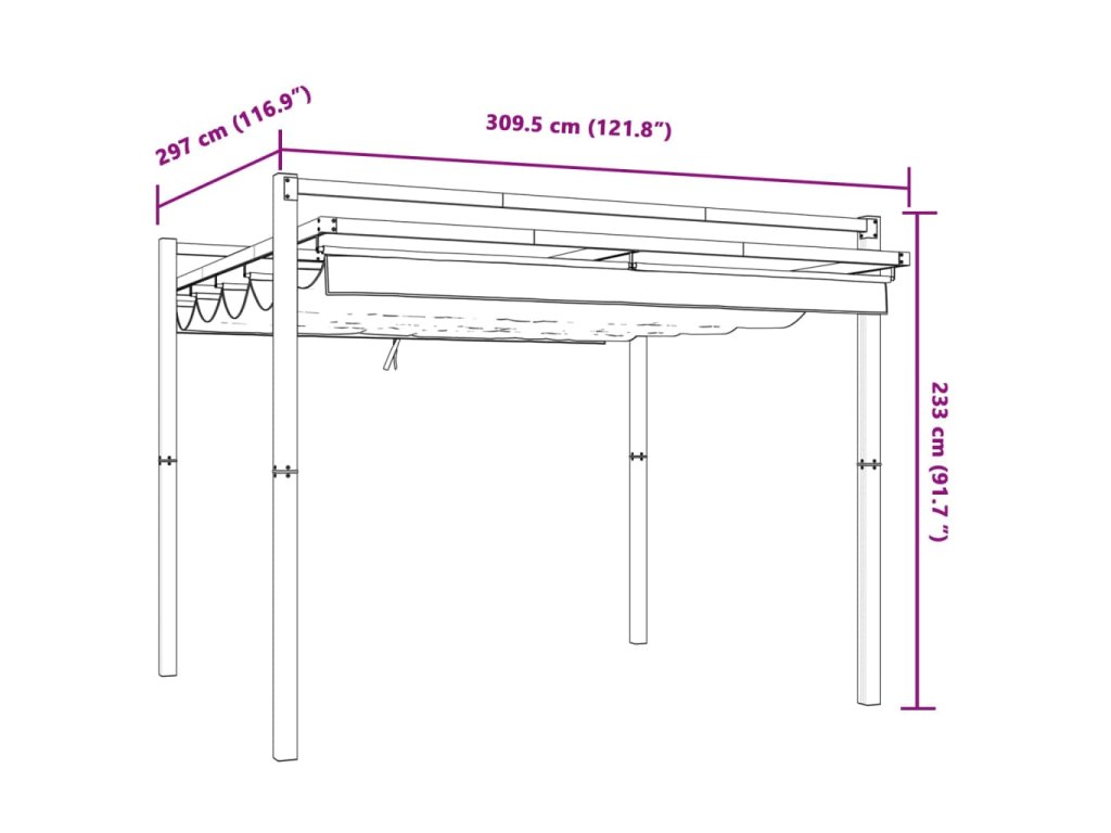 - Robustný a odolný rám: Rám vyrobený z hliníka je cenený pre dlhodobé vonkajšie použitie. Zaručuje stabilitu vďaka pevným nosníkom na podopretie strechy a vystuženým stojanom.