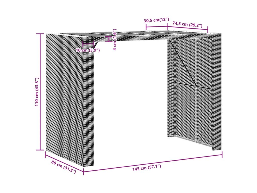 - Rozmery: 145 x 80 x 110 cm (D x Š x V)
