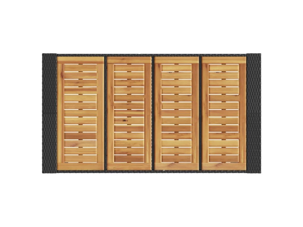 - Materiál: PE ratan, práškovaná oceľ, masívne akáciové drevo s olejovým náterom