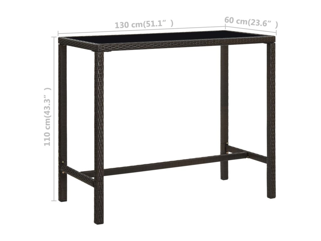 Multidom Záhradný barový stôl hnedý 130x60x110 cm polyratan a sklo