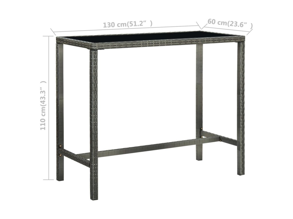 Multidom Záhradný barový stôl sivý 130x60x110 cm polyratan a sklo