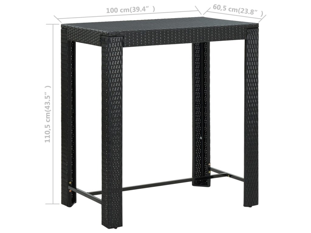 Multidom Záhradný barový stolík čierny 100x60,5x110,5 cm polyratanový