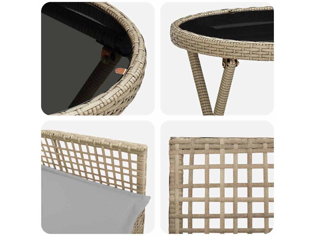 - Prémiová konštrukcia z poly ratanu Tento moderný bistro set je vyrobený z prémiového poly ratanu, ponúkajúceho trvalé a štýlové riešenie pre vonkajšie sedenie. Materiál sa osvedčuje voči poveternostným podmienkam, čo zaručuje, že set ostáva atraktívny po celý rok. Každý kus si zachováva svoj tvar a vzhľad s minimálnou starostlivosťou, čo robí bistro set perfektnou voľbou pre zaneprázdnených majiteľov domov.