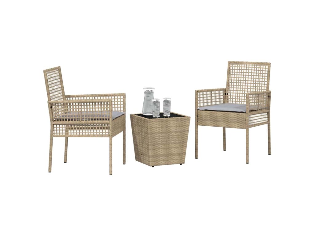 - Zahrnuté komponenty: Set obsahuje stôl z tvrdeného skla na jednoduché čistenie. K tomu penové vankúše a poly ratanové operadlá, ktoré ponúkajú pohodlie a podporu na dlhé chvíle vonku. Všetko spolu tvoria pekný a funkčný vonkajší priestor.