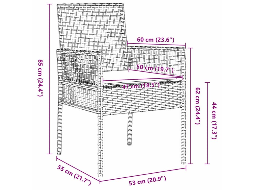 - Materiály: Bistro set je vyrobený z poly ratanu, ktorý zaručuje dlhú životnosť a odolnosť voči počasiu. Je odolný voči UV žiareniu, takže aj počas slnečných dní si udrží svoju krásu. Vďaka vysokým pevným vlastnostiam poly ratanu je set robustný a spoľahlivý na dlhé roky.