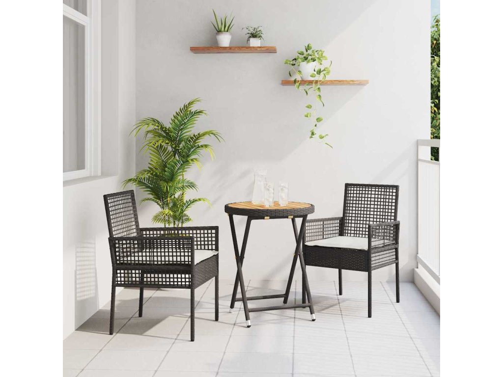 Multidom Záhradný bistro set 3 pcs Čierna polyratan