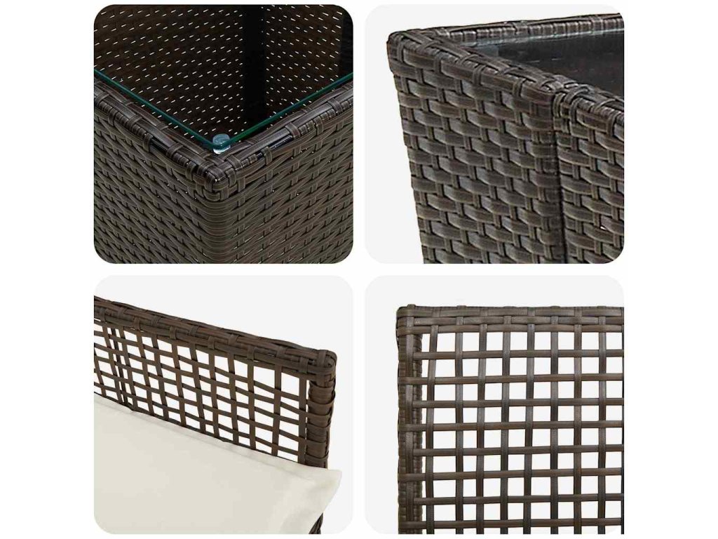 - Prémiový materiál: Vyrobený z poly ratanu, odolného voči UV žiareniu a vonkajším vplyvom. Prírodná textúra dodáva príjemný vzhľad a dlhú životnosť.