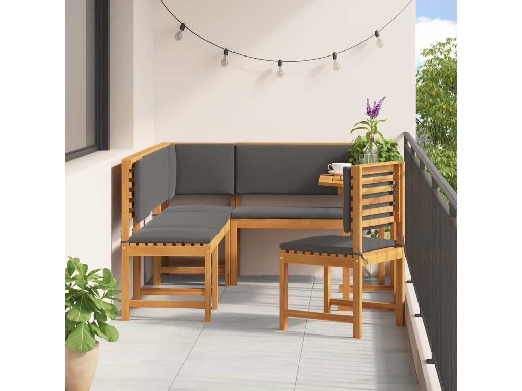 - Materiál: Solidné akáciové drevo dáva tomuto robustnému bistro setu odolnosť a prírodný vzhľad, ktorý mu skvele ladí so záhradou. Oceniteľný pre svoje odolné vlastnosti voči počasiu, materiál zabezpečuje, že set zostane vo výbornom stave na jar aj v lete.