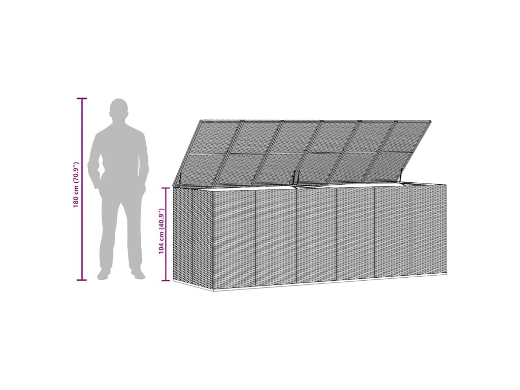 Multidom Záhradný box na vankúše z polyratanu 291x100,5x104 cm sivý