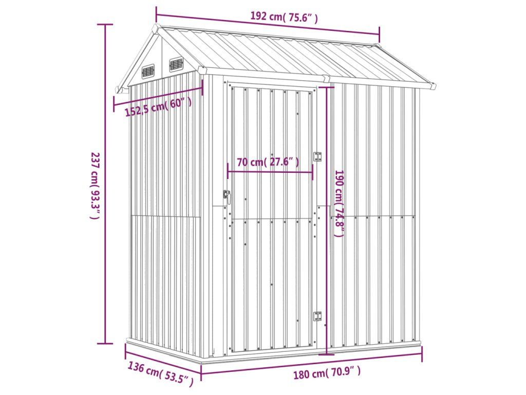 - Odolný materiál: Záhradný domček na náradie je vyrobený z pozinkovanej ocele, ktorá zabraňuje hrdzaveniu a vydrží dlhodobé používanie. Oceľ je mimoriadne tvrdý a pevný materiál. Ponúka robustnosť a stabilitu. Galvanizácia poskytuje lepšiu ochranu pred koróziou a je užitočná pre produkty, ktoré sa budú používať vonku, ako aj v náročných podmienkach.