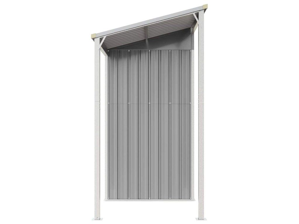 - Dostatok úložného priestoru: Tento kovový domček ponúka dostatok miesta na uskladnenie palivového dreva, záhradného náradia, nábytku, vybavenia a ďalších vecí. Má tiež predĺženú strechu na uskladnenie palivového dreva. Strechu je možné upevniť na oboch stranách prístrešku.