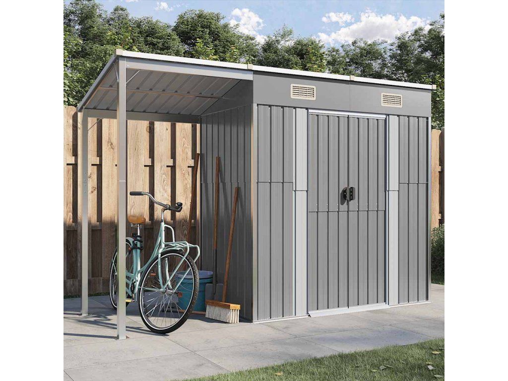 Multidom Záhradný domček s predĺženou strechou, svetlosivý, 277x107x181 cm, oceľový