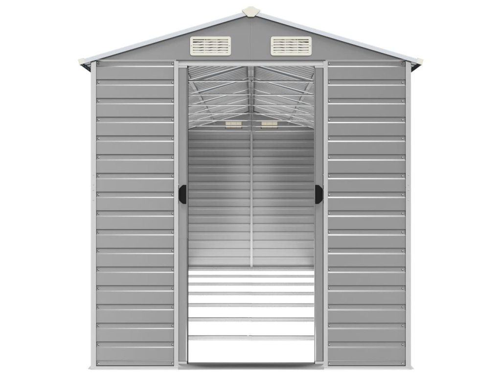 - Odolný materiál: Záhradný domček na náradie je vyrobený z pozinkovanej ocele, ktorá zabraňuje hrdzaveniu a vydrží dlhodobé používanie. Oceľ je mimoriadne tvrdý a pevný materiál. Ponúka robustnosť a stabilitu. Galvanizácia poskytuje lepšiu ochranu pred koróziou a je užitočná pre produkty, ktoré sa budú používať vonku, ako aj v náročných podmienkach.