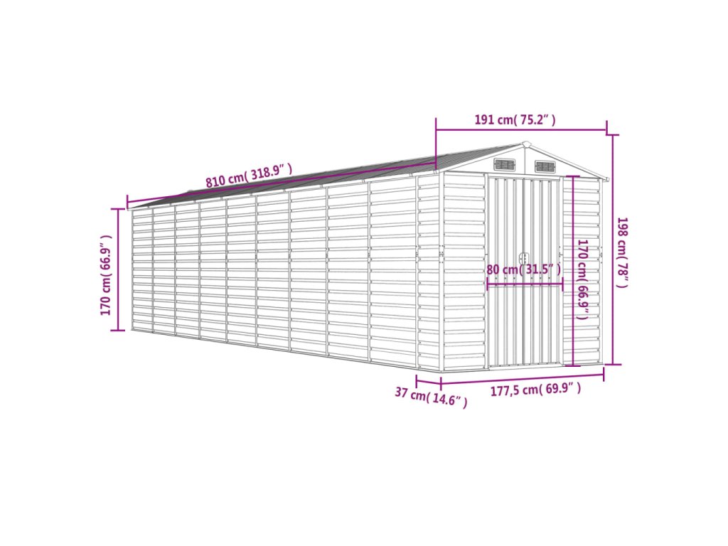 Multidom Záhradný domček svetlosivý 191x810x198 cm pozinkovaná oceľ