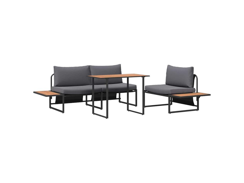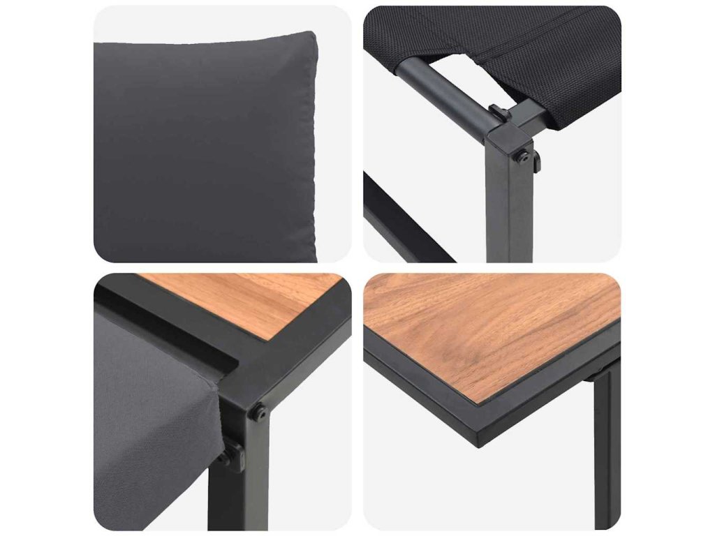 - Odolné materiály: Robustný oceľový rám zabezpečuje stabilitu a dlhú životnosť. Práškový nástrek chráni set pred rôznymi poveternostnými podmienkami.