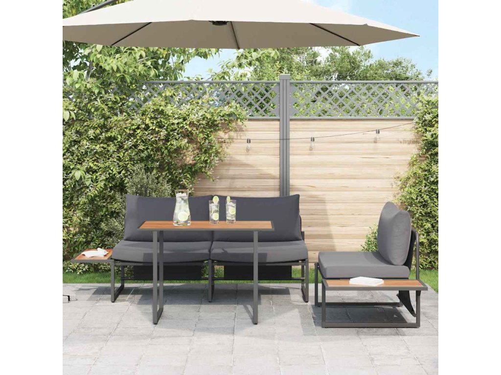 Tento moderný záhradný jedálenský set spojuje elegantný dizajn s funkčnosťou, takže je skvelý na vonkajšie stretnutia a rodinné jedlá. Jeho štýlový vzhľad prináša jedinečný zážitok a je odolný voči vonkajším podmienkam, čo zabezpečí potešenie aj v nasledujúcich sezónach. Predstavte si večere pod hviezdami, kým tento set vylepšuje váš vonkajší priestor s jednoduchosťou a kreativitou.