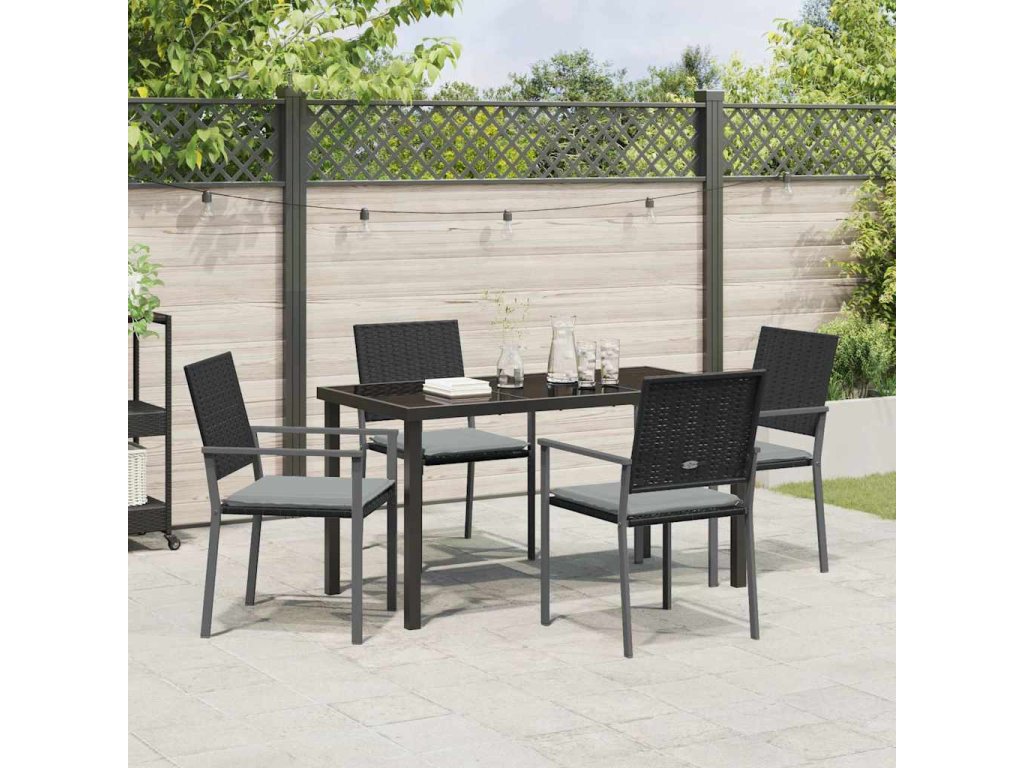 Multidom Záhradný jedálenský set 5 pcs Čierna a svetlo šedá PE ratan