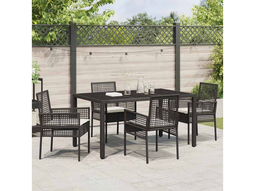 Tento moderný jedálenský set je skvelým stredobodom pozornosti pre akúkoľvek vonkajšiu plochu a spája styl s funkčnosťou. Vďaka elegantným líniám a minimalistickému dizajnu prináša nádych elegancie, či už sa jedná o neformálne stretnutia, alebo formálne jedlá vonku. Je ideálny na moderné záhrady a terasy, poskytuje dosť sedenia a príjemnú atmosféru. Premyslená kombinácia poly ratanového materiálu a tvrdeného skla vyžaruje sofistikovanosť, a pohodlné vankúše zabezpečujú komfortný jedálenský zážitok.