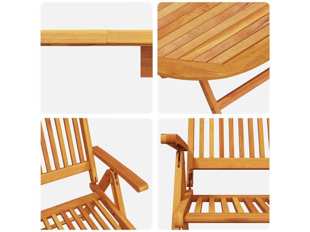 - Prémiový akáciový materiál Tento set je vyrobený zo solid acacia wood a ponúka krásny prirodzený vzhľad. Akáciové drevo je veľmi odolné voči počasiu, takže ti vydrží dlhú dobu bez straty krásy. Jeho teplá hnedá farba skvele zapadne do záhrady alebo na terasu.