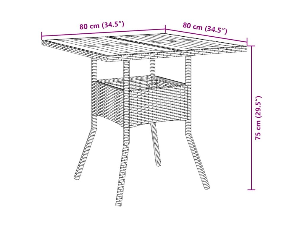 - 1 x Stôl: 80 x 80 x 75 (D x Š x V)