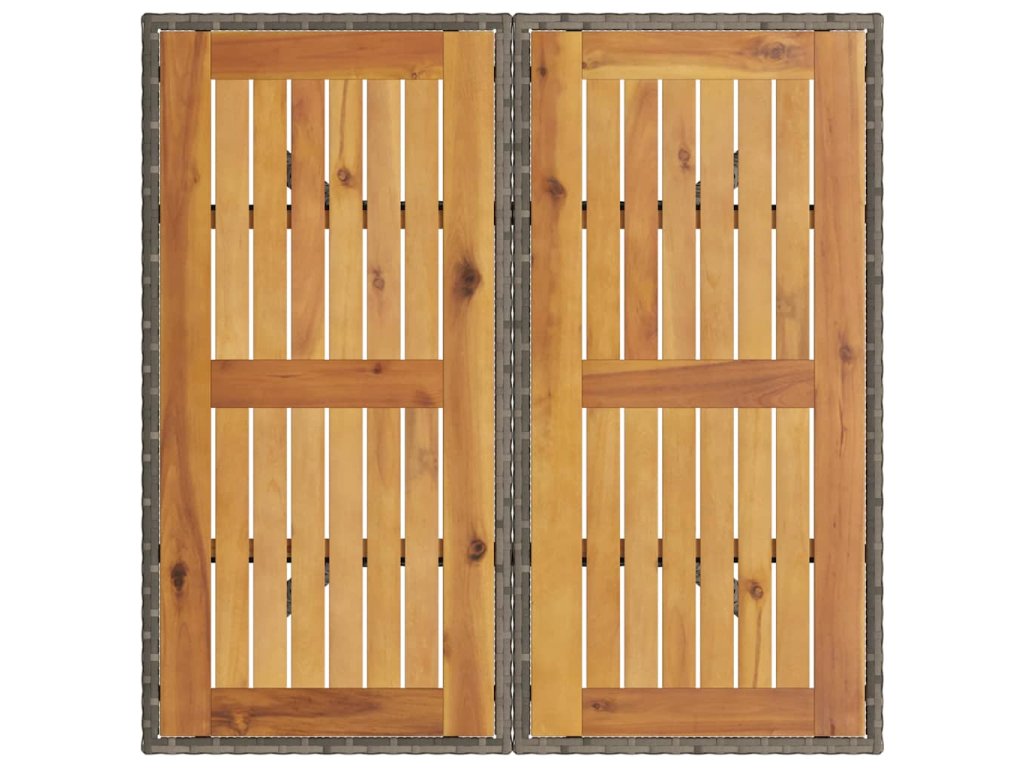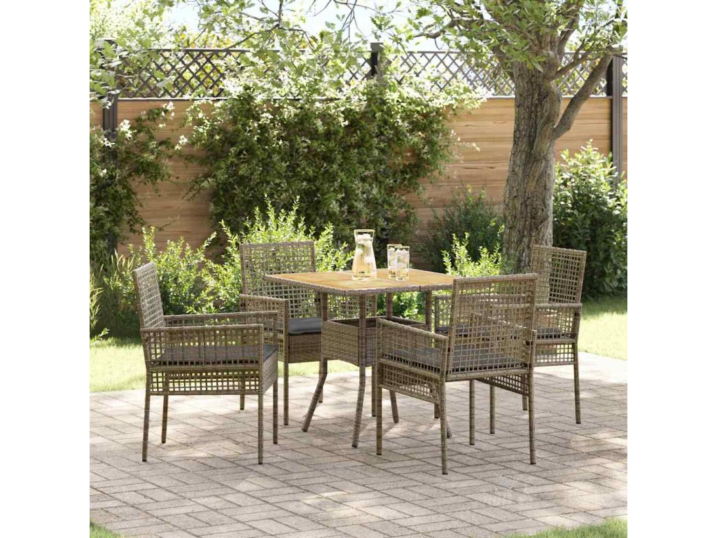 - Materiály: Táto jedálenská súprava je vyrobená z poly ratanu, má skvelý tkaný vzhľad a je určená na vonkajšie použitie. Je odolná voči počasiu, takže vydrží dlhá léta. Kombinácia s pevným akáciovým drevom dodáva teplý prirodzený úchop, čím vytvára príjemné prostredie na stolovanie.