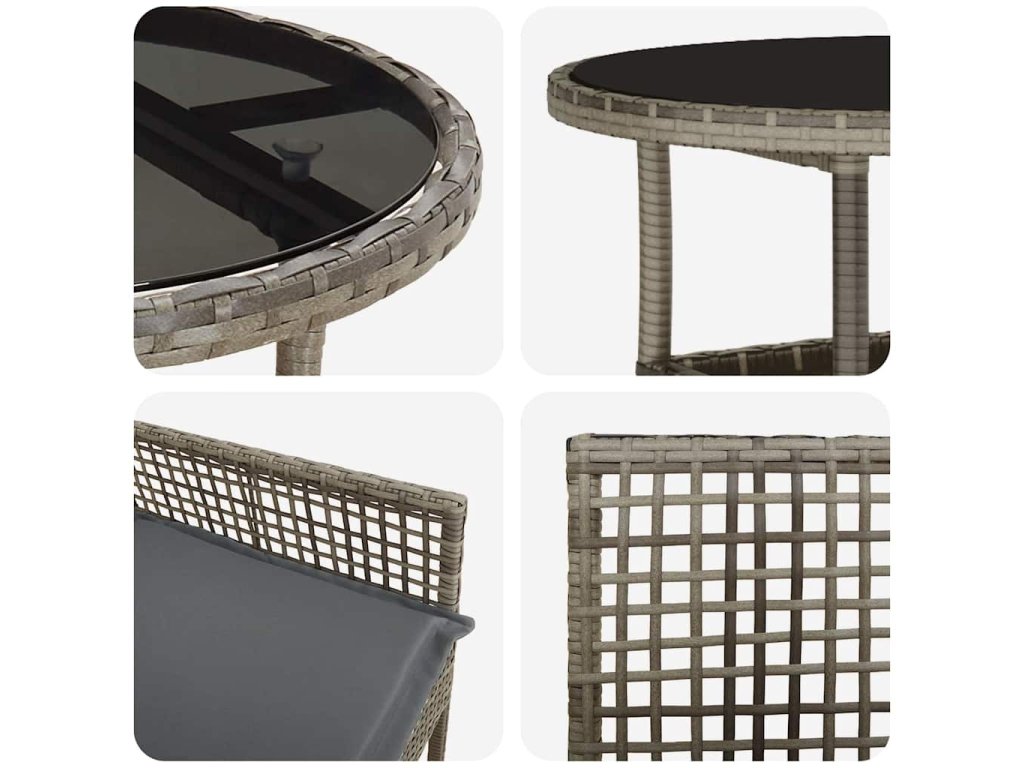 - Rám z poly ratanu: Vynikajúca odolnosť voči poveternostným podmienkam, perfektný pre vonkajšie použitie. Materiál si zachováva krásny vzhľad aj v nepriaznivom počasí.
