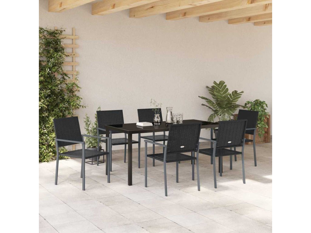 Multidom Záhradný jedálenský set 7 pcs Čierna PE ratan