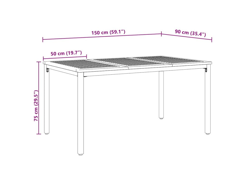 - 1 x Záhradný stôl: 90 x 90 x 75 cm (D x Š x V)
