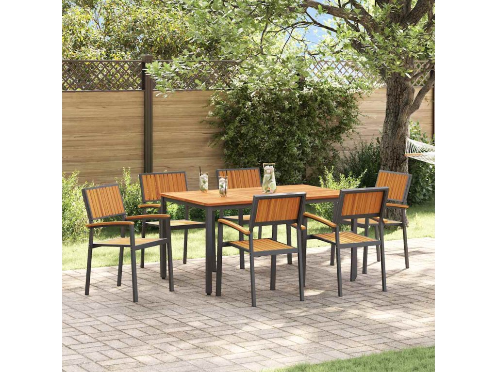 Multidom Záhradný jedálenský set 7 pcs Čierna Pevné akáciové drevo