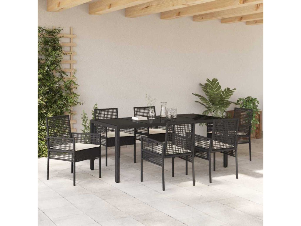 Multidom Záhradný jedálenský set 7 pcs Čierna polyratan