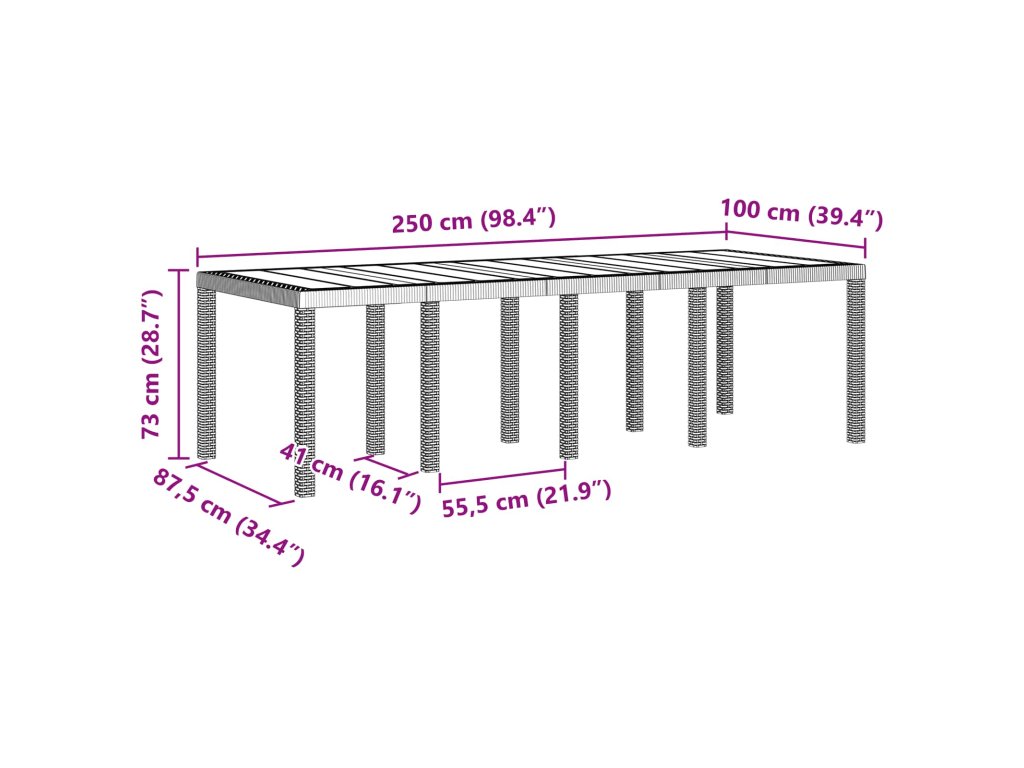 - Celkové rozmery: 250 x 100 x 73 cm (D x Š x V)
