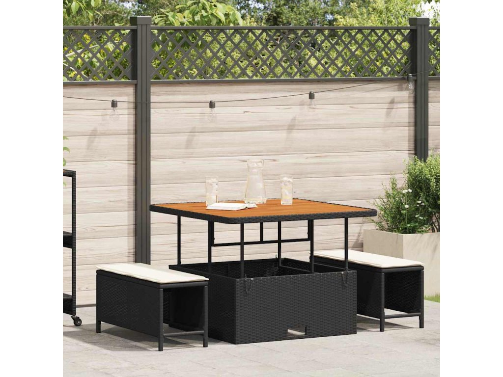 Multidom Záhradný jedálenský set Čierna polyratan