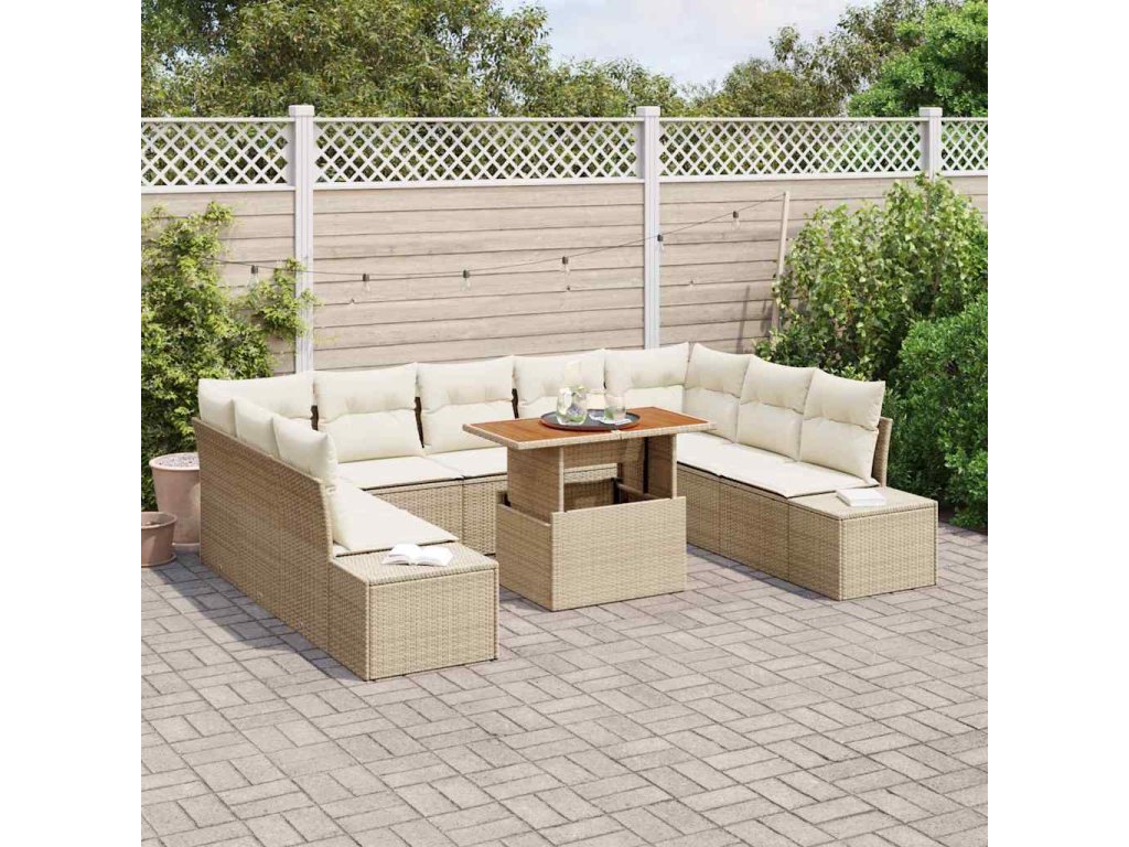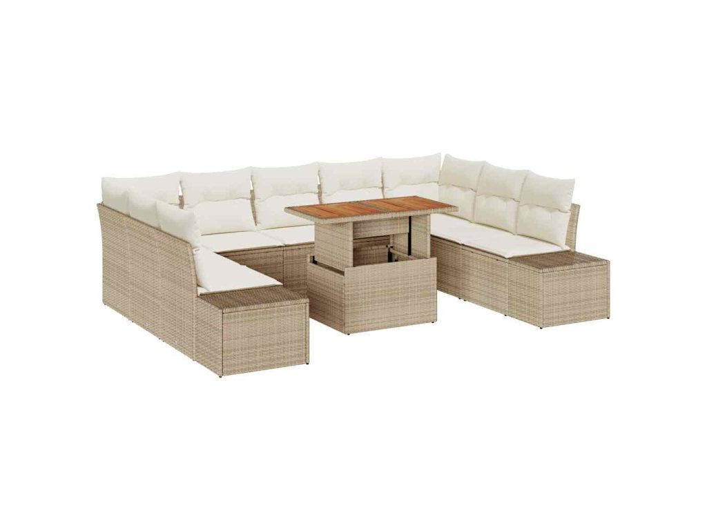 Multidom Záhradný jedálenský set s vankúšom 10 pcs Béžová a krémová